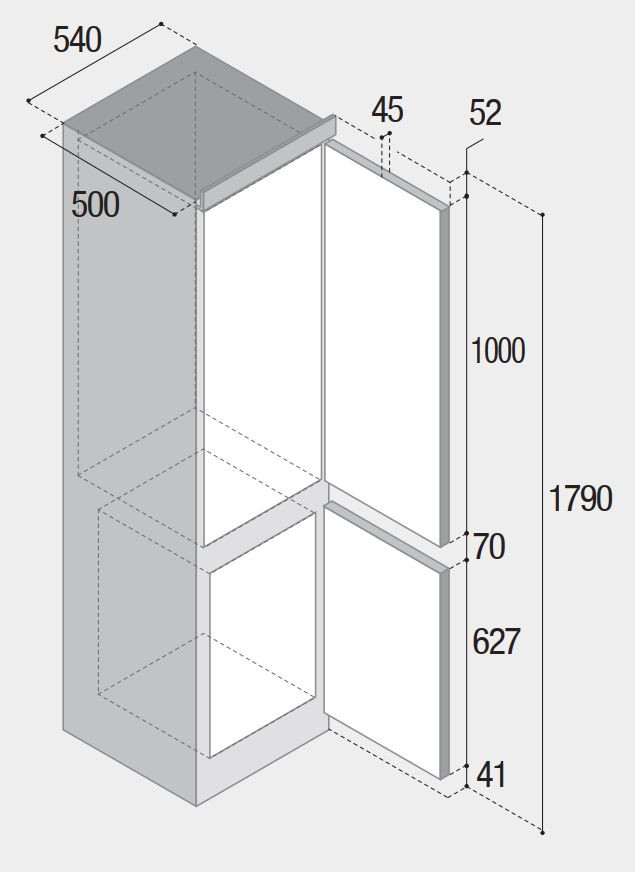 Vnější rozměry š/h/v: 540 / 545 / 1790