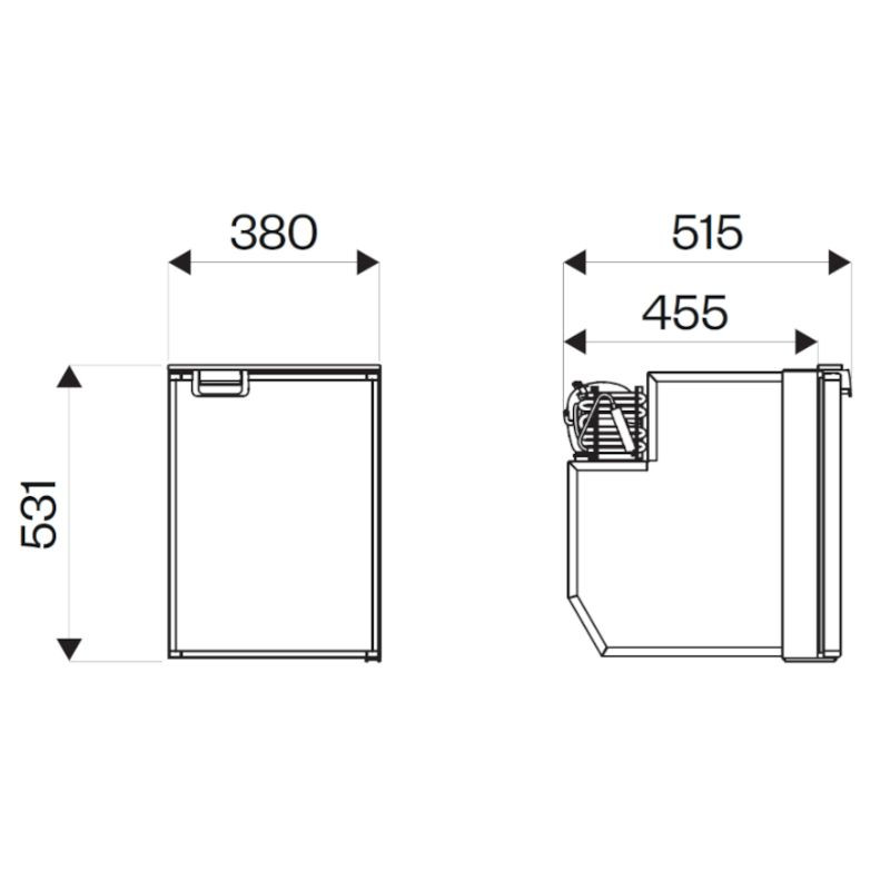 Všechny lednice série Cruise jsou vybaveny SECOP kompresorem chlazeným vzduchem 12/24 Voltů, mrazáčkem, vnitřním osvětlením, termostatem, dveře s bezpečnostním zámkem a magnetickým gumovým těsněním. Bezespárový vnitřní korpus z tvrdého plastu je vhodný pro uchovávání potravin. Všechny rohy jsou zaoblené, aby se zajistilo jejich lepší čištění. To je obzvlášť důležité, protože palubní lednice se často nepoužívají delší dobu.